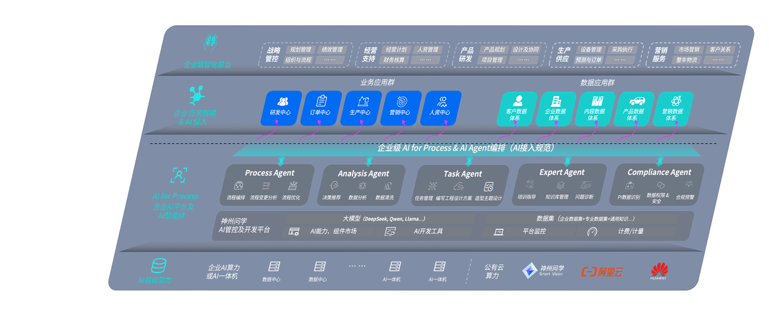 端到端的一站式AI工作空间深度融合了从企业战略规划到日常经营的全流程业务板块,,定向解决车企内部领域多、、、、部门多、、、、链条长、、、场景碎片化等难题,,支持车企快速构建以AI为核心的生产力写作体系,,,实现任务执行与AI能力的无缝集成与交互
